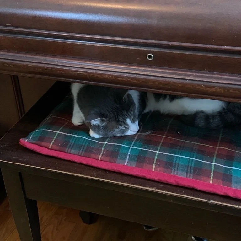 Who loves naps? Do you have a favourite place to curl up for a quick cat nap, like our cat Harry? The piano bench is one of his many napping spots.