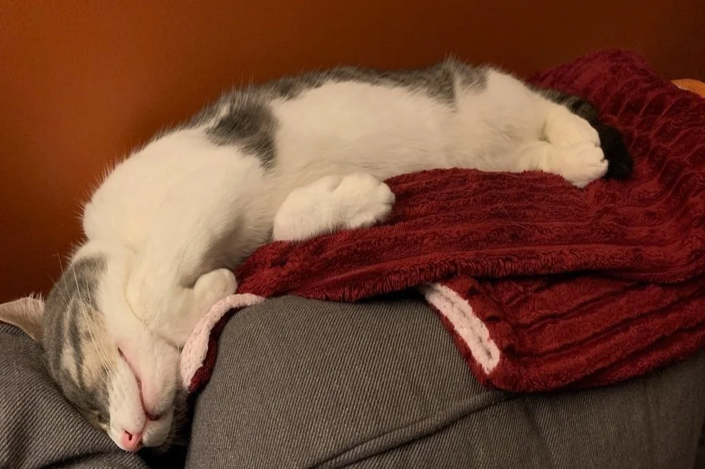 There is something blissfully peaceful about a cat napping. It's like they've perfected the art of contentment and rest, enjoying the moment, not worrying about the next thing to come. Where do you find moments of peace in your life?